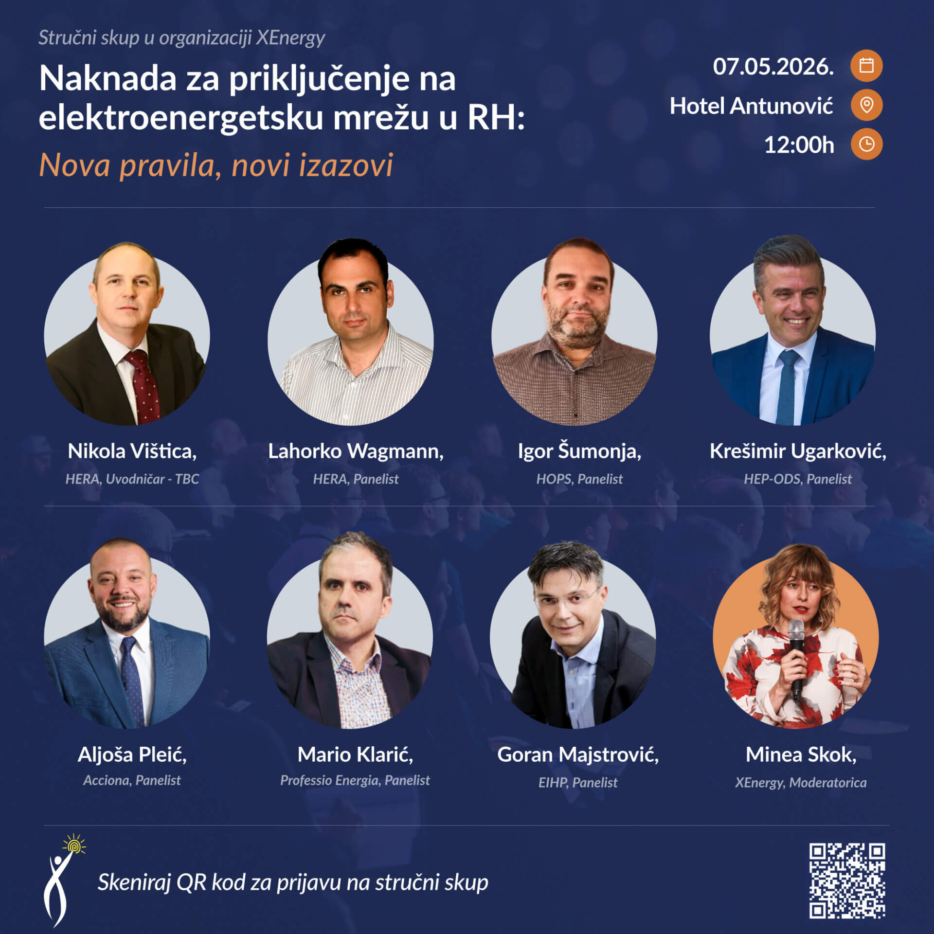 Kako će nova metodologija priključenja utjecati na razvoj energetskog sustava i investicije u obnovljive izvore? Koje su ključne implikacije za tržište i kako će se primjenjivati u praksi? Upravo o tome razgovaramo na ekskluzivnom stručnom skupu u organizaciji udruge XEnergy koji će se održati 7. svibnja 2026. u Kongresnom centru Antunović na 1. katu. Okupit ćemo ključne dionike i stručnjake iz sektora – predstavnike regulatora (HERA), operatore mreže (HOPS i HEP-ODS), industriju i vodeće stručnjake s ciljem otvorenog i konstruktivnog dijaloga.